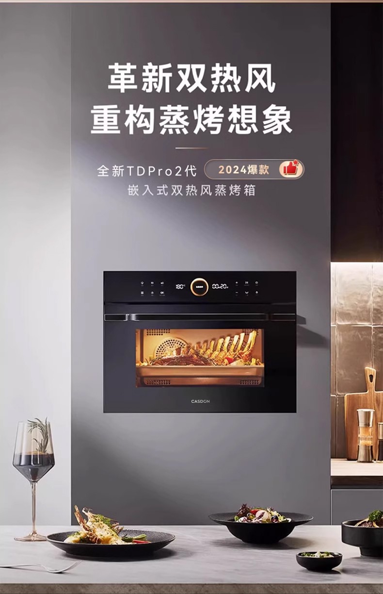 全新TD Pro二代嵌入式双热风蒸烤箱